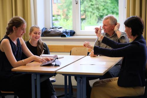 In der letzten Schulwoche fand am Gymnasium Tutzing ein Projekttag zur politischen Bildung statt. Viele externe Kooperationspartner ermöglichten ein breites Themenangebot, das von Planspielen über Workshops bis hin zu einer Schreibwerkstatt mit dem Münchner Kabarettisten Christian Bumeder reichte. Ein Schwerpunkt lag dabei in den 9. Klassen auf dem Thema "Flucht und Migration". Neben einem Workshop zu interkultureller Kompetenz, der von Frau Träger und Frau Huber, zwei Integrationslotsinnen des Landkreises Starnberg, angeleitet wurde, war ein Highlight des Projekttages ein Begegnungsprojekt zwischen Schülerinnen und Schülern des Gymnasiums und geflüchteten Personen.